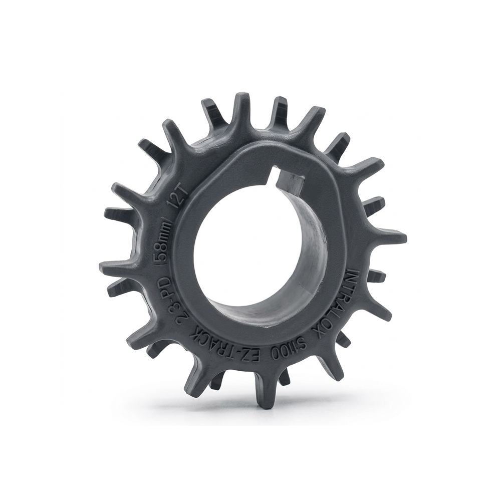 High-precision Intralox S1100 EZ-Track 12T sprocket with 2.3″ (58mm) pitch diameter. Round bore with keyway for 1100 Series belts. Ensure perfect alignment and drive.